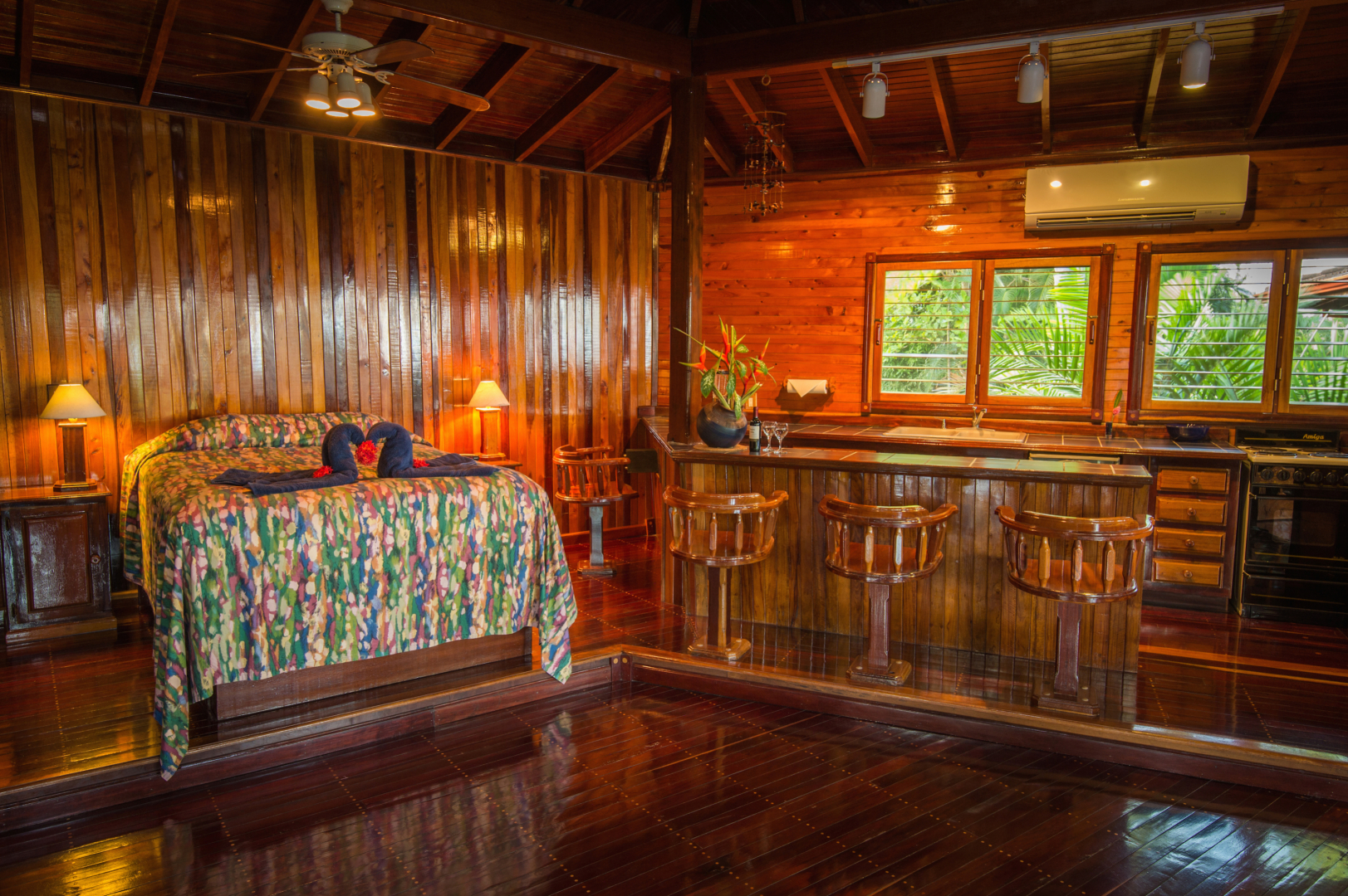 - Dining and Recreation: Experience culinary delights at the full restaurant with the option of dining inside or outside and a thatched roof outdoor bar, exercise in the dedicated rancho. The property has some trails that are ideal for bird watching and several scarlet macaw nests purposely positioned to encourage breeding. The grounds of this hotel are a treat for nature lovers.