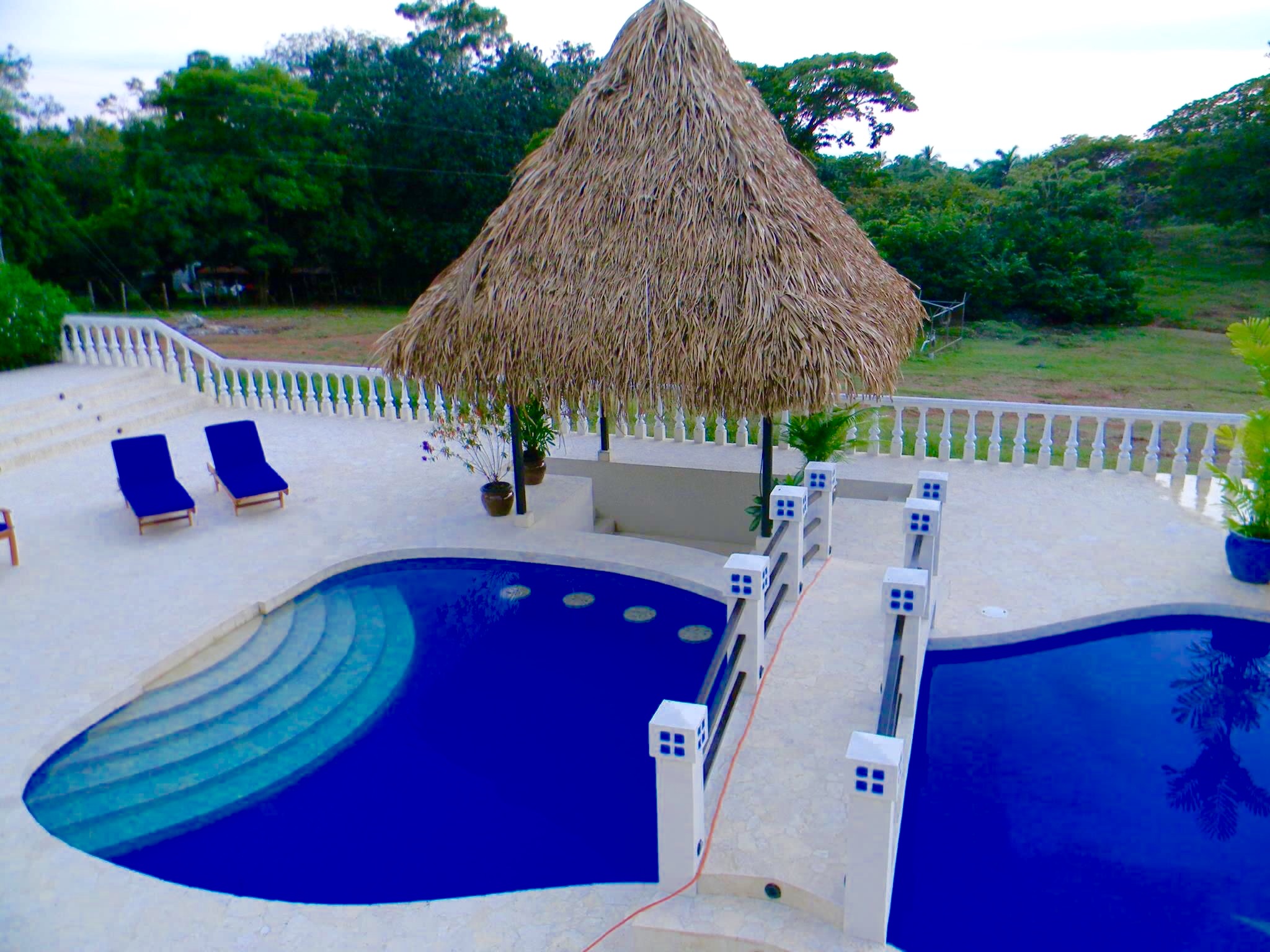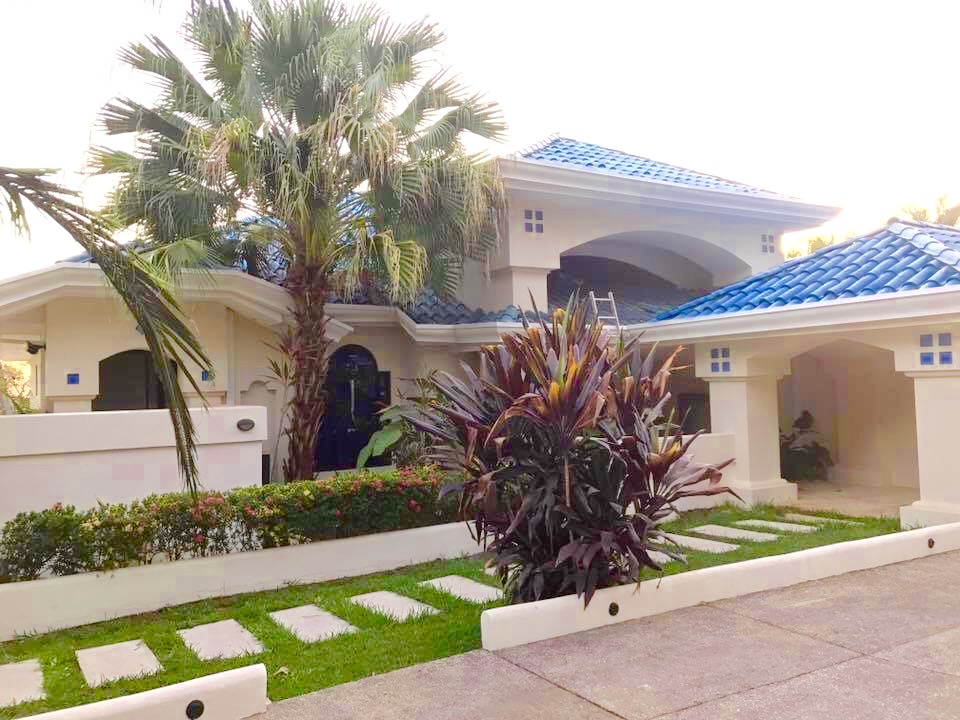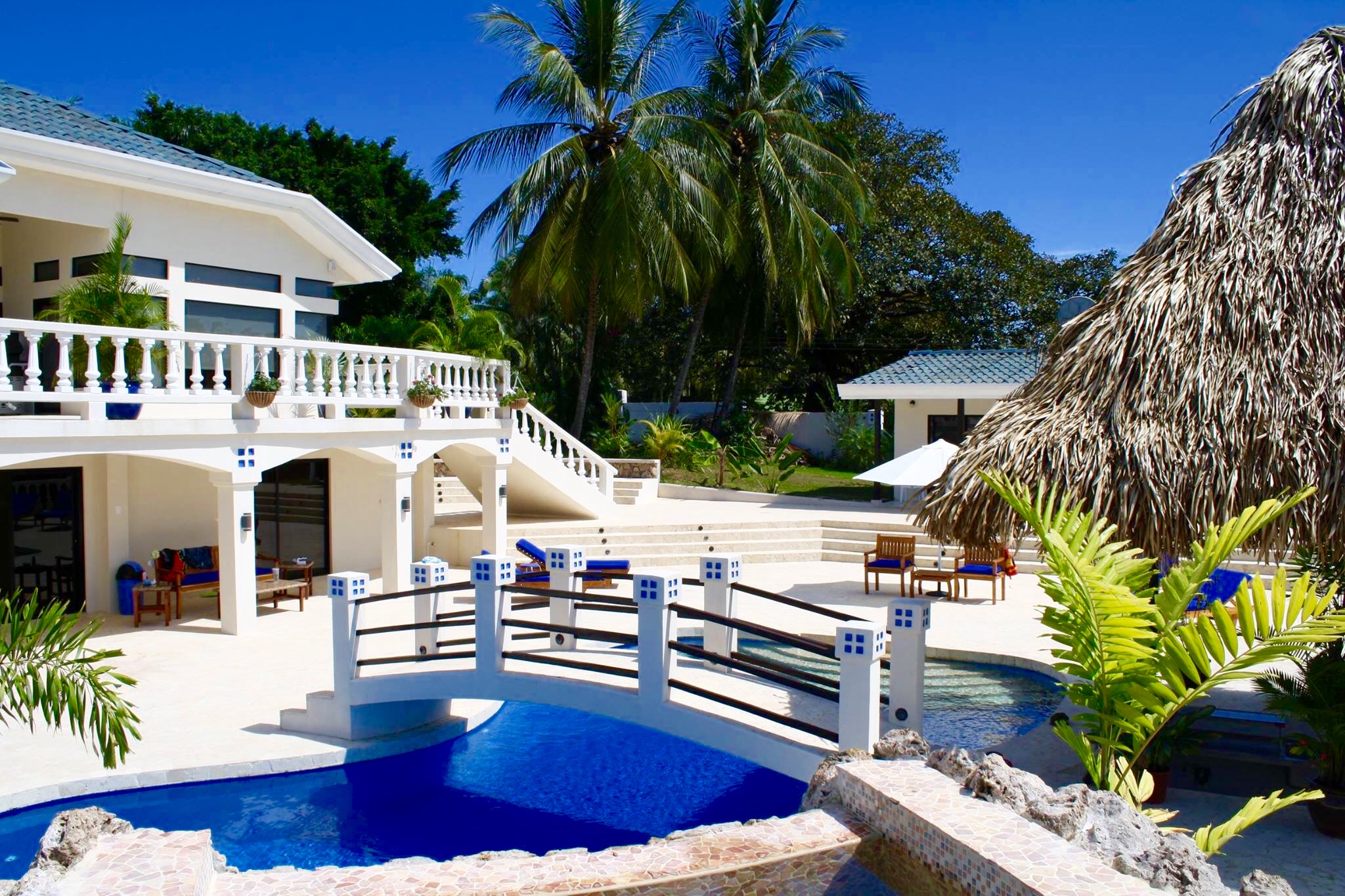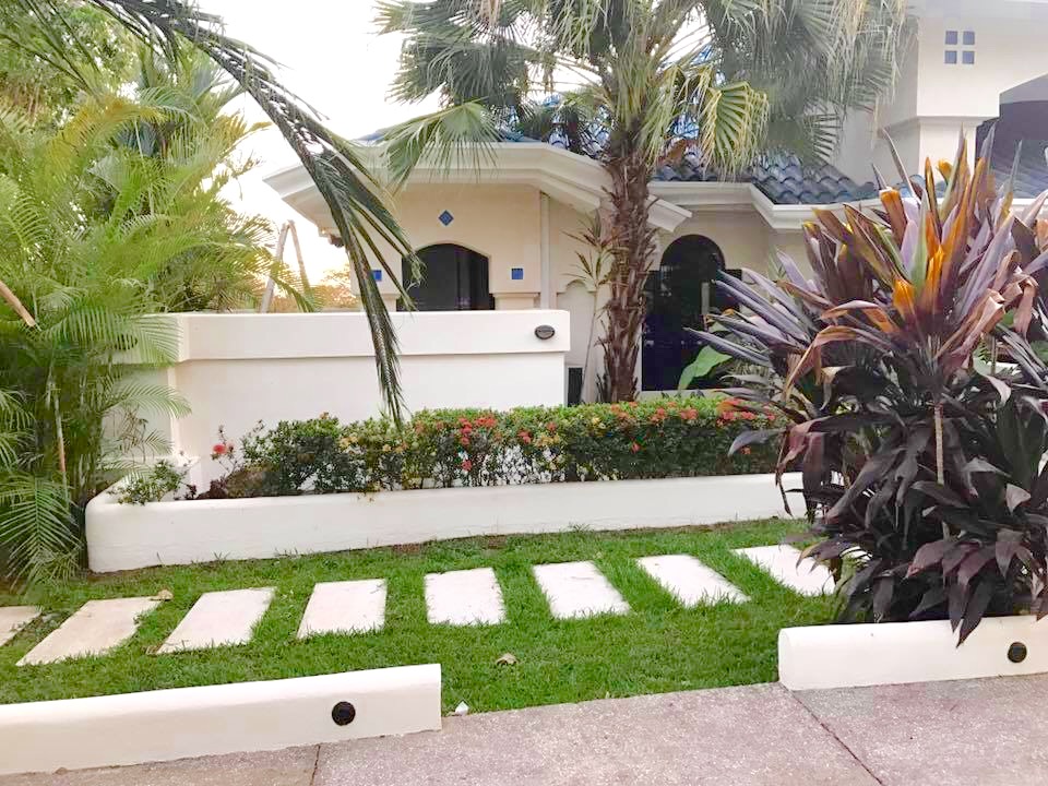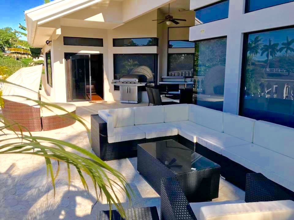 Have you ever thought about owning a private luxury oasis within the lush jungles of Costa Rica? Me, too. This impressive piece of real estate will be the crown jewel on your portfolio. The property is located across from the 1st tee of the Tango Mar golf course and is within easy walking distance of the beach. It consists of a total of eight (8) bedrooms, four and a half (4.5) bathrooms, and an entire world of outdoor space to play around in and enjoy. All of this grandeur is sprawled out comfortably across 3,000 m2 (roughly 3/4 acre) of tastefully landscaped grounds, adorned with beautiful flowers and productive fruit trees on a vibrant green lawn. The main house consists of 557 m2 (6,000 square feet) of pristine craftsmanship and displays a tropical modern decorum. Sculptured marble floors, vaulted ceilings, gleaming hardwood planks, granite counter-tops, kitchen island with a stellar view, hand-crafted wooden cabinets, high-end fixtures and appliances, hot water throughout, fully furnished and 100% turn-key with comfortable beds, built-in handcrafted shelving / entertainment center, plush leather couches, patio furniture, etc.etc.etc, all decorated with great style. A complete inventory list of the items included in the sale will be provided prior to closing and they are estimated to be worth a minimum of $100,000 all on their own. The main house contains six (6) of the bedrooms. There are 4 bedrooms upstairs along with the grand foyer, the dining area, and the spacious open-concept kitchen & living-room which spills out onto the upper terrace. All bedrooms have “black out” curtains to give deep, restful sleep. The Master Suite has Venetian stucco walls and the Master Bath has a Jacuzzi tub and a double sink & shower. Downstairs is an independent, Spanish-styled unit with two bedrooms and an open-floor plan that opens up onto an elegant first floor patio with an in-ground swimming pool, a waterfall jacuzzi, and a swim up bar. There are over 465 m2 (5,000 gorgeous square feet) of decking made from petrified coral… This space is magical and would be ideal for weddings, yoga retreats, family reunions, epic vacation rentals, catered/ special events, and if you’re an especially fortunate one… full-time living in a tropical family compound. The possibilities are endless regarding flexibility and potential cash flow for this unique property. A two-bedroom casita off the pool deck rounds out the eight (8) bedrooms aforementioned and can be rented out separately or used in concert with the rest of the estate. The property has a full perimeter wall, an underground sprinkler system, a full stereo/ speaker system both inside and out, a separate caretaker’s unit for the full-time resident gardener and maid, a plethora of fruit trees (guanábana, “blood orange”, grapefruit, and lime), and all the high-end appliances, furnishings, and turn-key items included in the sale for the ridiculous bargain price of $595,000 USD. It would not be possible to rebuild/ replace this property right now for less than approximately 1.5 million USD based on current building and materials costs, so whoever is savvy enough to jump on this rare opportunity will be making their money on the front end of this purchase. The furnishings, appliances, and turn key items alone are worth over $100,000 USD, so $595,000 USD is a STEAL for this luxury property. The owners are not desperate to sell, but rather they are eager to use the proceeds of the sale to further fuel another successful endeavor of theirs in Costa Rica. Serious buyers only. Asking price firm. Pura Vida.