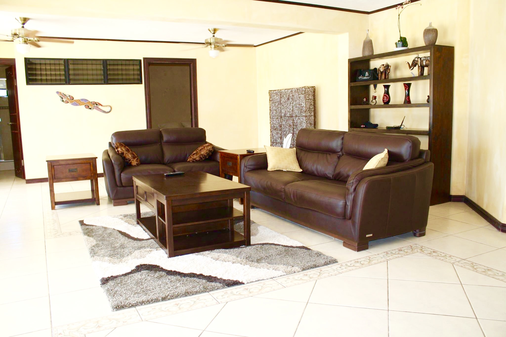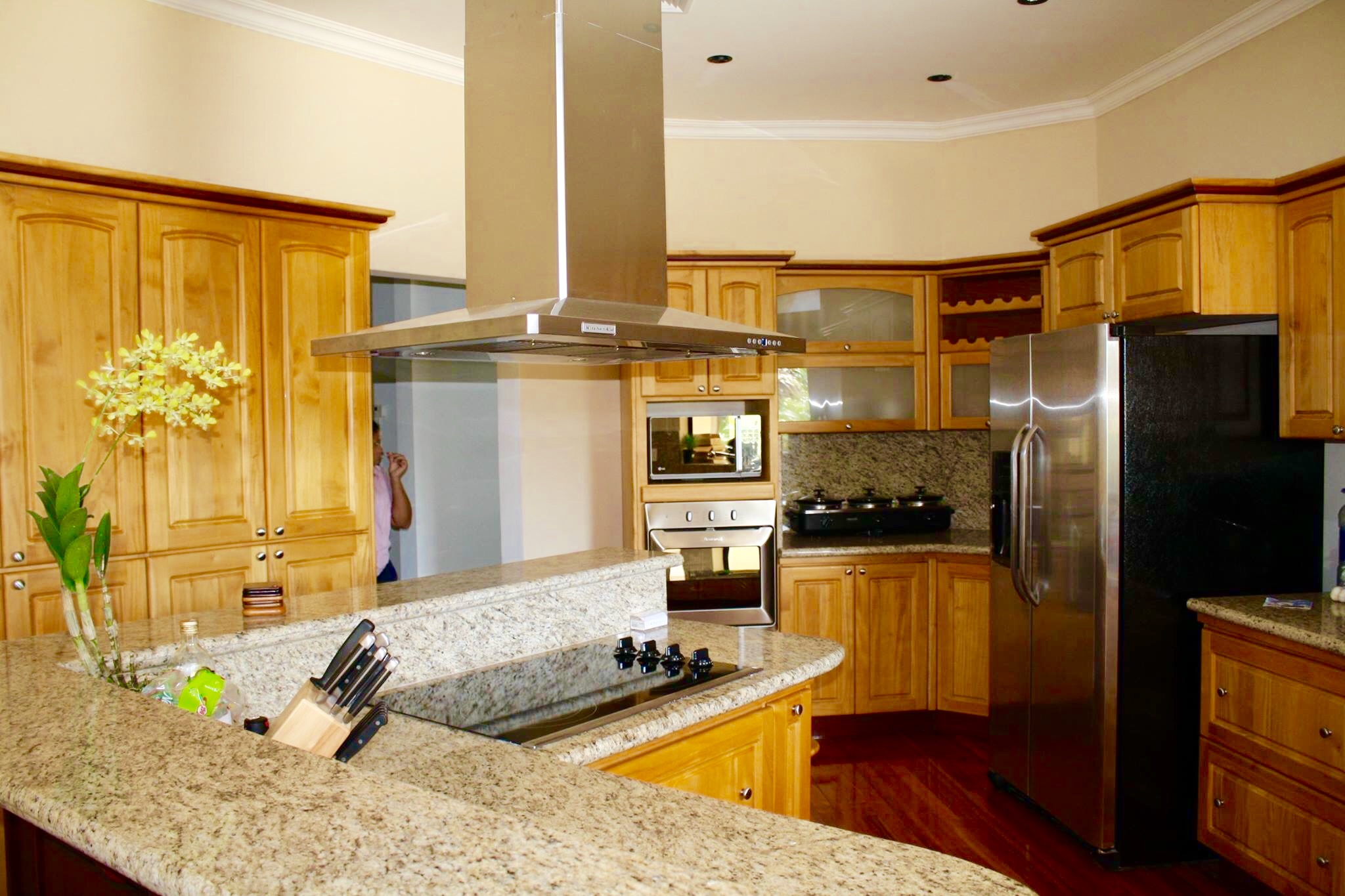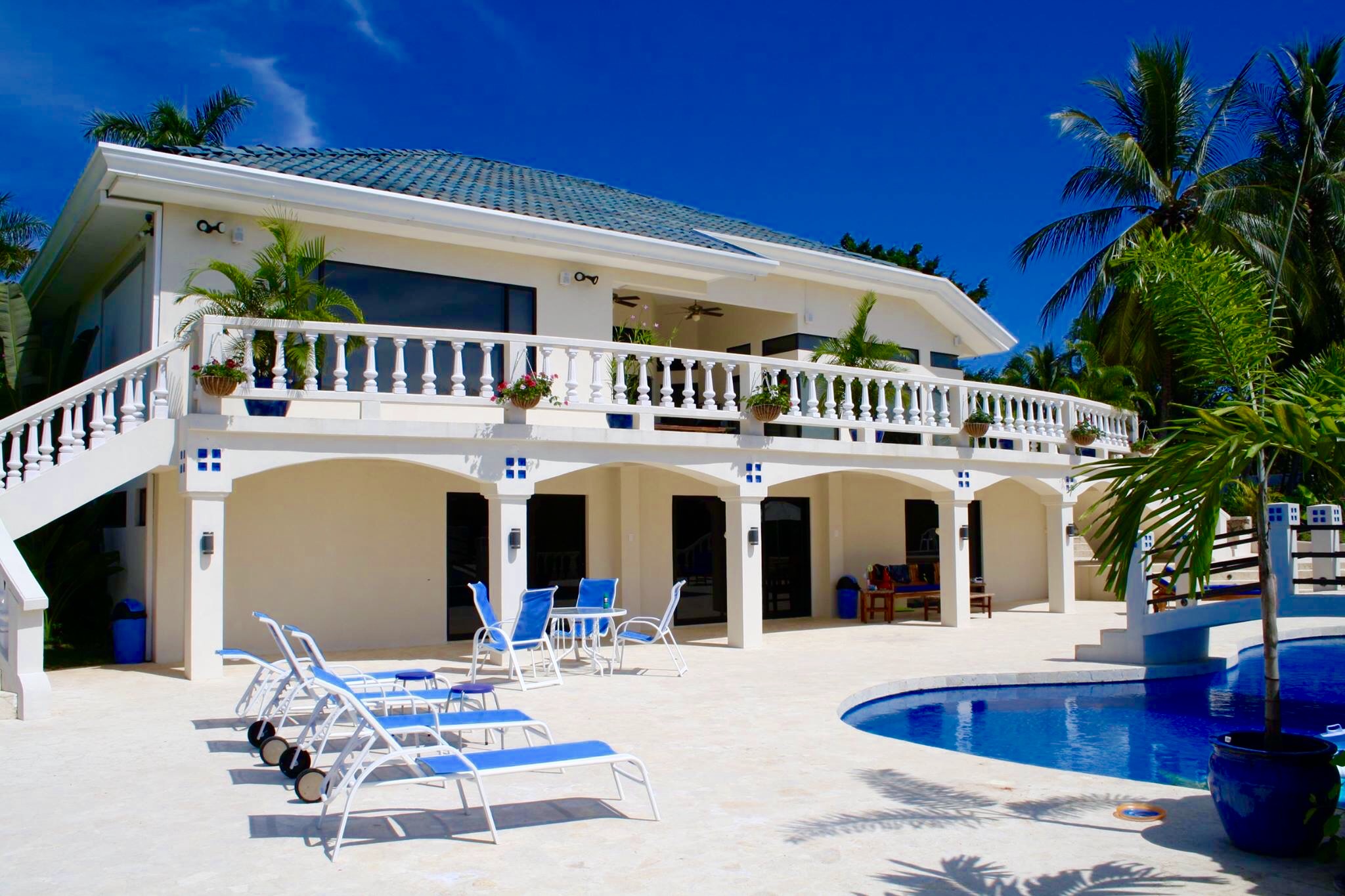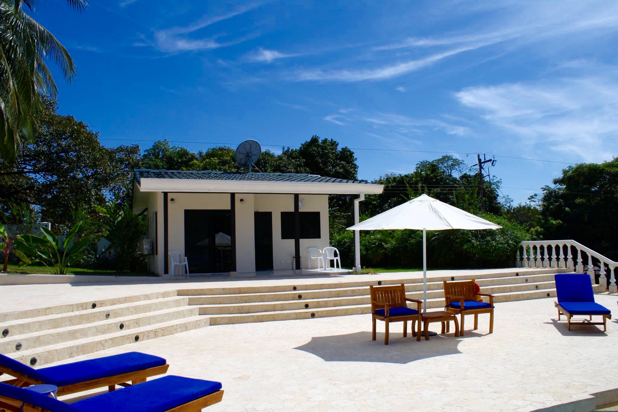 Have you ever thought about owning a private luxury oasis within the lush jungles of Costa Rica? Me, too. This impressive piece of real estate will be the crown jewel on your portfolio. The property is located across from the 1st tee of the Tango Mar golf course and is within easy walking distance of the beach. It consists of a total of eight (8) bedrooms, four and a half (4.5) bathrooms, and an entire world of outdoor space to play around in and enjoy. All of this grandeur is sprawled out comfortably across 3,000 m2 (roughly 3/4 acre) of tastefully landscaped grounds, adorned with beautiful flowers and productive fruit trees on a vibrant green lawn. The main house consists of 557 m2 (6,000 square feet) of pristine craftsmanship and displays a tropical modern decorum. Sculptured marble floors, vaulted ceilings, gleaming hardwood planks, granite counter-tops, kitchen island with a stellar view, hand-crafted wooden cabinets, high-end fixtures and appliances, hot water throughout, fully furnished and 100% turn-key with comfortable beds, built-in handcrafted shelving / entertainment center, plush leather couches, patio furniture, etc.etc.etc, all decorated with great style. A complete inventory list of the items included in the sale will be provided prior to closing and they are estimated to be worth a minimum of $100,000 all on their own. The main house contains six (6) of the bedrooms. There are 4 bedrooms upstairs along with the grand foyer, the dining area, and the spacious open-concept kitchen & living-room which spills out onto the upper terrace. All bedrooms have “black out” curtains to give deep, restful sleep. The Master Suite has Venetian stucco walls and the Master Bath has a Jacuzzi tub and a double sink & shower. Downstairs is an independent, Spanish-styled unit with two bedrooms and an open-floor plan that opens up onto an elegant first floor patio with an in-ground swimming pool, a waterfall jacuzzi, and a swim up bar. There are over 465 m2 (5,000 gorgeous square feet) of decking made from petrified coral… This space is magical and would be ideal for weddings, yoga retreats, family reunions, epic vacation rentals, catered/ special events, and if you’re an especially fortunate one… full-time living in a tropical family compound. The possibilities are endless regarding flexibility and potential cash flow for this unique property. A two-bedroom casita off the pool deck rounds out the eight (8) bedrooms aforementioned and can be rented out separately or used in concert with the rest of the estate. The property has a full perimeter wall, an underground sprinkler system, a full stereo/ speaker system both inside and out, a separate caretaker’s unit for the full-time resident gardener and maid, a plethora of fruit trees (guanábana, “blood orange”, grapefruit, and lime), and all the high-end appliances, furnishings, and turn-key items included in the sale for the ridiculous bargain price of $595,000 USD. It would not be possible to rebuild/ replace this property right now for less than approximately 1.5 million USD based on current building and materials costs, so whoever is savvy enough to jump on this rare opportunity will be making their money on the front end of this purchase. The furnishings, appliances, and turn key items alone are worth over $100,000 USD, so $595,000 USD is a STEAL for this luxury property. The owners are not desperate to sell, but rather they are eager to use the proceeds of the sale to further fuel another successful endeavor of theirs in Costa Rica. Serious buyers only. Asking price firm. Pura Vida.