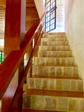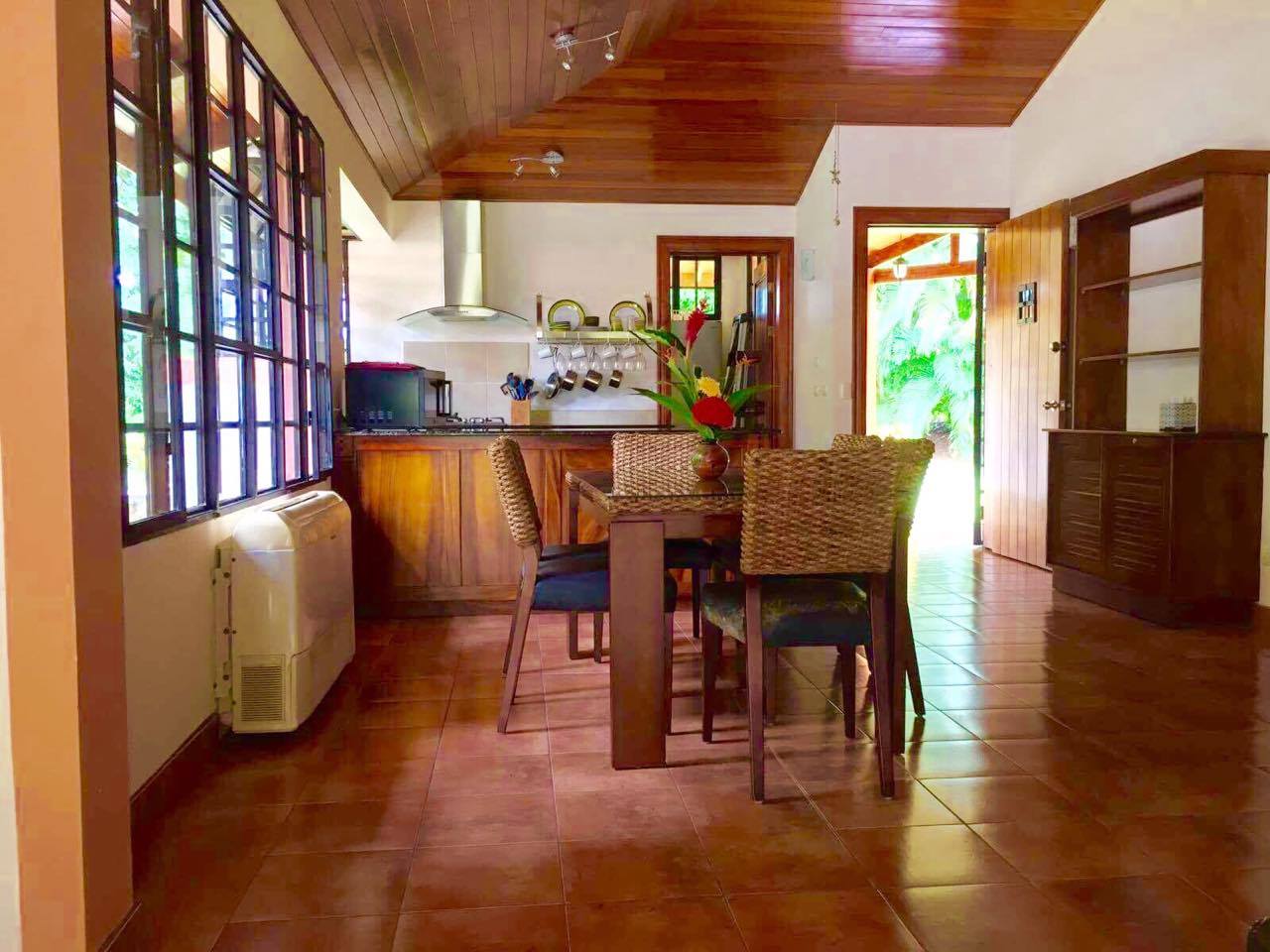 Located in the exclusive Villas Del Mar community in Tambor, this 1/2 acre property is the ideal tropical hideaway. Built to North American standards in 1996 and elegantly remodeled in 2007, this classy, smoothly laid out 2-story house is furnished tastefully and has great decor. The home is enshrouded in lush tropical gardens and consists of approximately 1,700 square feet of living space. It has 2 bedrooms and 3 bathrooms, an open floor plan kitchen/ dining-room/ living-room, and a huge 2nd floor patio that can be converted into a 3rd bedroom or a studio down the line, if desired. The 2nd floor is currently used as a lounge, a cozy jungle lookout by day and star gazing sanctuary by night. The kitchen has granite counter-tops and cabinets made from beautiful local hardwoods. It flows comfortably into the dining area and the living space, which spills outside onto the covered patios and the pool area. Large inground pool, lanai area, outdoor BBQ, bar, and dining area. Enchanting landscaping all around the grounds. Large detached 2-car garage, parking for 4. The total construction includes a total of 3,768 square feet. Gorgeous hideaway in upscale neighborhood. Very close to Tango Mar’s beach, restaurant, tours, etc. and a short drive to Tambor Beach or Cobano. Thirty minutes to Montezuma/ Santa Teresa/ Malpais. Fantastic price for an elegant turn-key property!!!