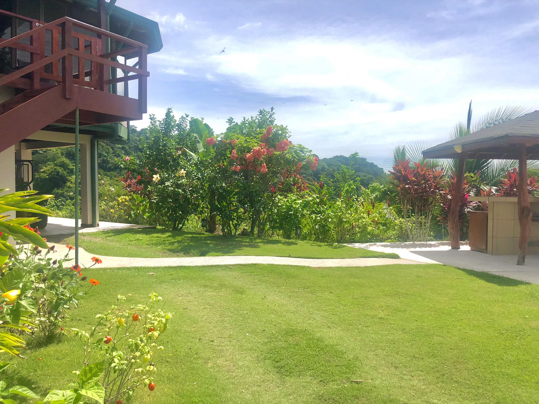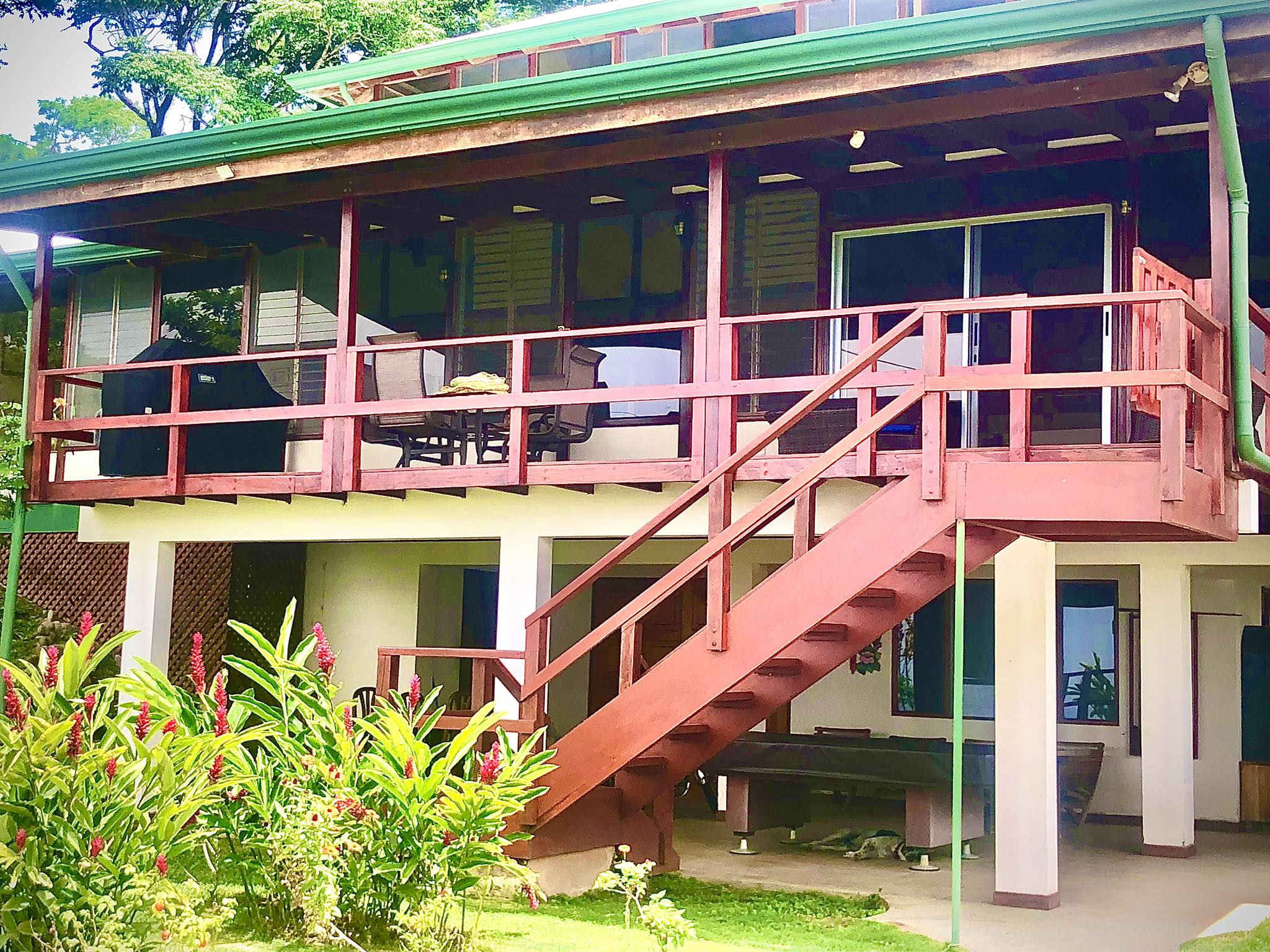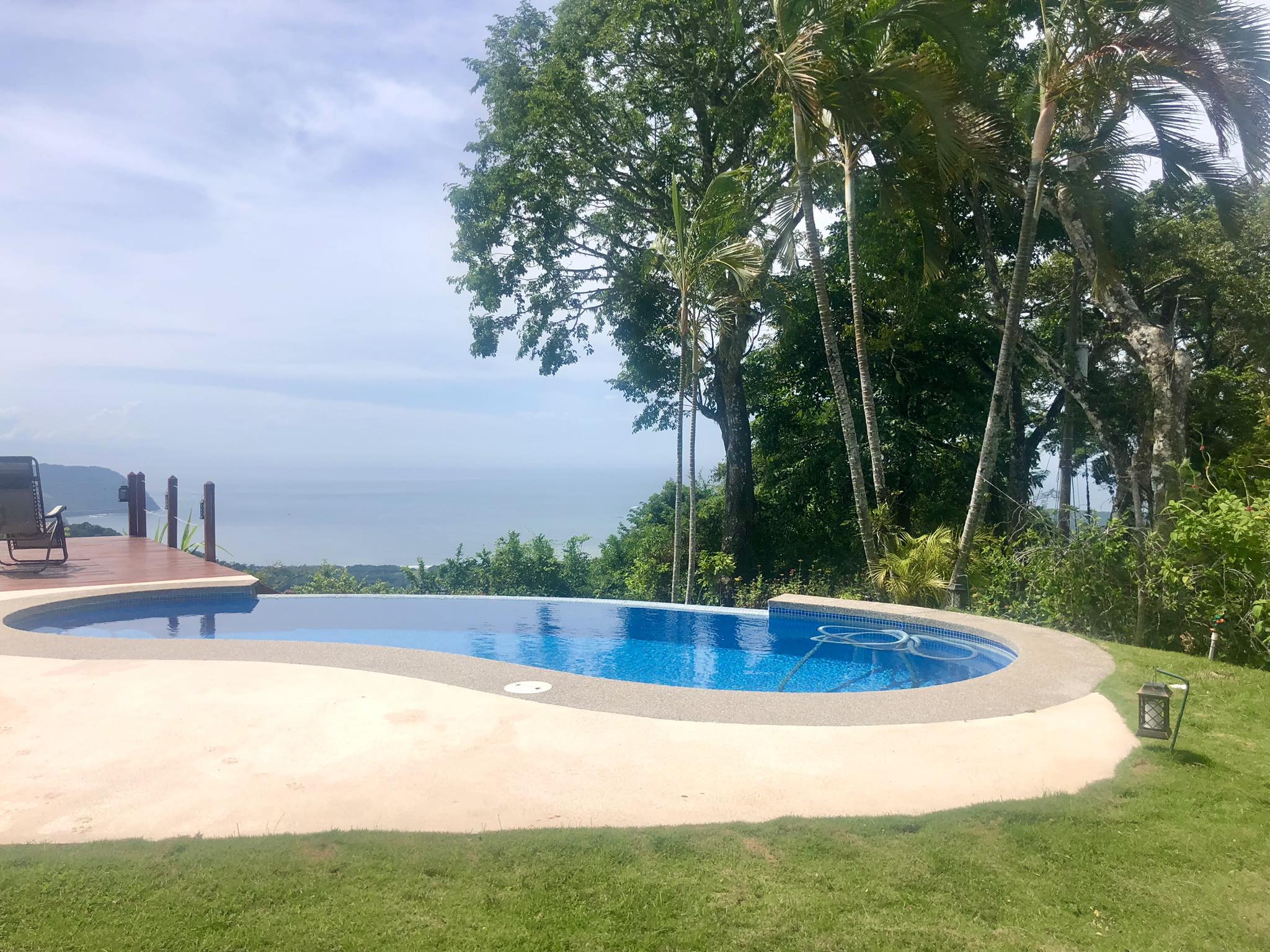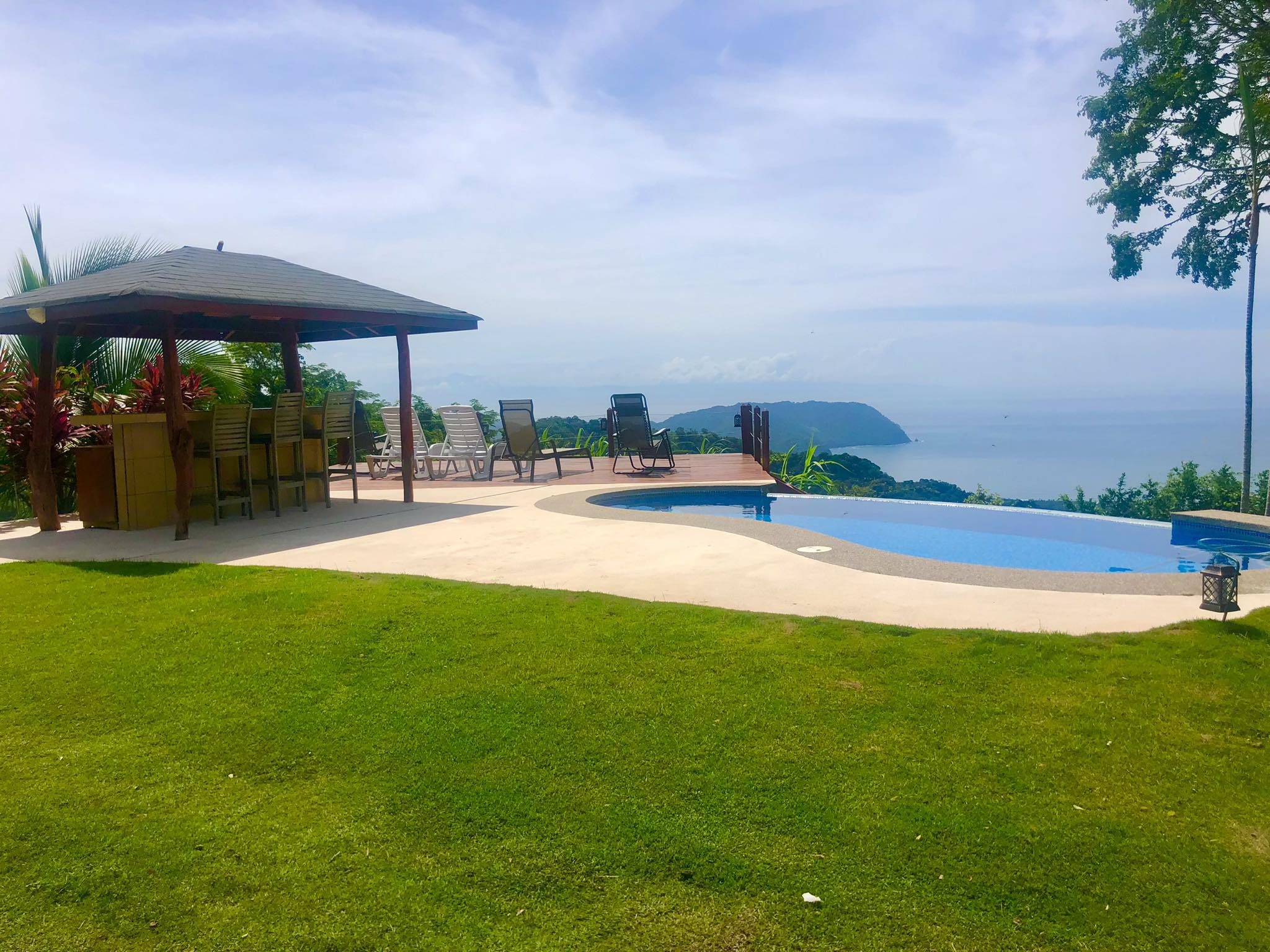 This huge tropical estate truly has it all. A massive, well-crafted 4 bedroom/ 4.5 bathroom main home (3,896 sq. feet) with a separate caretaker’s unit on the first floor (516 sq. feet) sits on 38,610 m2 (9.54 acres) of glorious hilltop, ocean-view land. At the highest point of the property you’ll find a concrete helipad for your aerial enjoyment. The property has its own private, legally registered water well, in addition to being connected to the community’s water supply. Take a dip in the refreshing swimming pool that overlooks the entirety of Bahia Bellena, including a bird’s eye view of the Tambor airstrip.