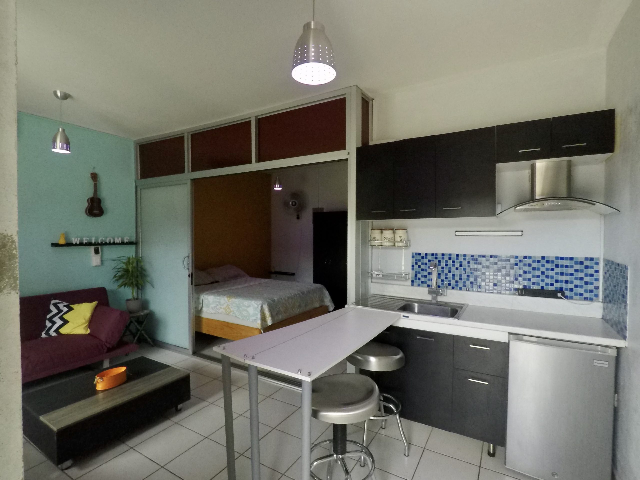 The office located at the main road entrance is bright and welcoming. It has high-speed internet, a private bath and A/C. The studio apartment is perfect for a single person or couple. It comes completely furnished and has every amenity possible to make your guest or long-term tenant feel comfortable for the duration of their stay. The main living space features one good-sized bedroom, modern kitchen and bath. Attached to the main home is a garage with ceramic tile floor for easy clean-up. It has plenty of room for two vehicles and your off-road vehicle of choice. Attached to the garage is a laundry room. Upstairs has a terrace with gorgeous mountain views. All of this for only $390,000!