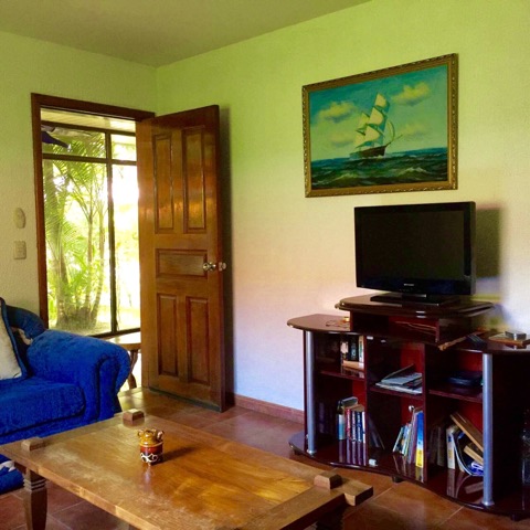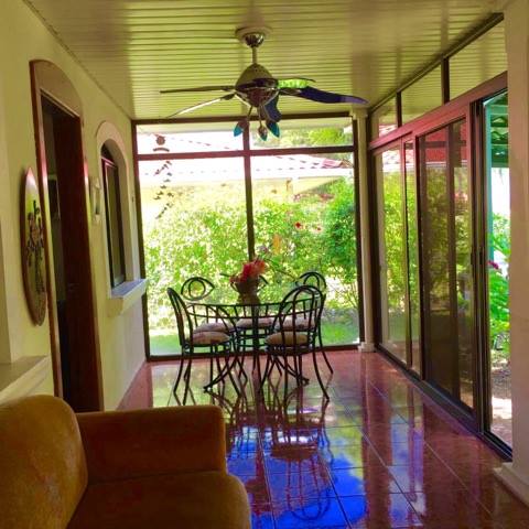 A cute two bedroom, two bathroom townhouse that’s located in a desirable private community which contains it’s own beach, golf course, tennis & basketball courts, convenience store, and restaurant. The neighborhood is peaceful and within close proximity to the shopping, bars, local eateries, and public beaches. The Tambor airport (TMU) sits on a property adjoining the community, so a puddle-jumper flight is a hop, skip, and jump away. Tropical foliage and the beauties of nature set the tone for this modern jungle society. Macaws fly & squabble overhead, families of ducks waddle between watering holes, and the Ancient Order Of Iguanas scramble from tree to tree.